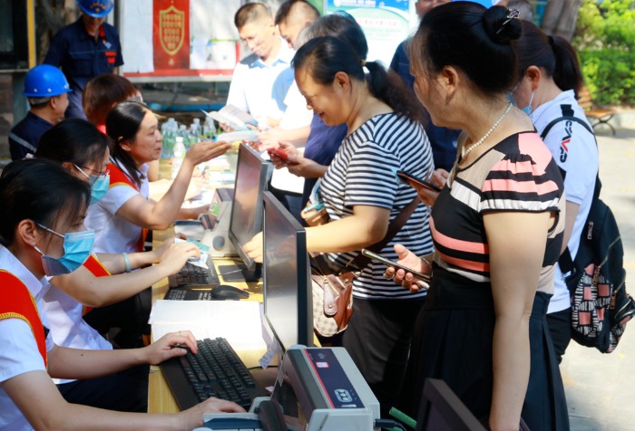 上午8時(shí),設置在竹湖園廣場(chǎng)的“520”便民服務(wù)點(diǎn),熱鬧不已,炳草崗水廠(chǎng)、怡康飲用水有限公司共產(chǎn)黨員服務(wù)隊、青年志愿者服務(wù)隊的隊員們,禮貌熱情地向群眾介紹集團公司“520”服務(wù)品牌建設理念,發(fā)放“520”民生服務(wù)承諾、現行水價(jià)政策、用水節水常識等宣傳資料,對群眾關(guān)心的水質(zhì)、水壓、抄表、收費等問(wèn)題進(jìn)行耐心細致的逐一解答。
