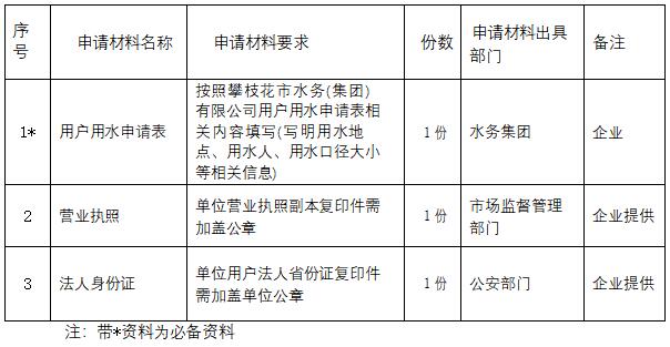 非居民用水申請材料: